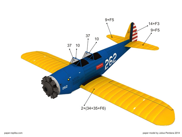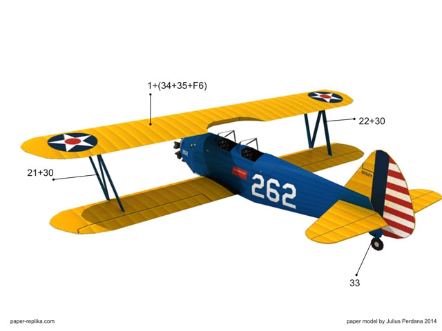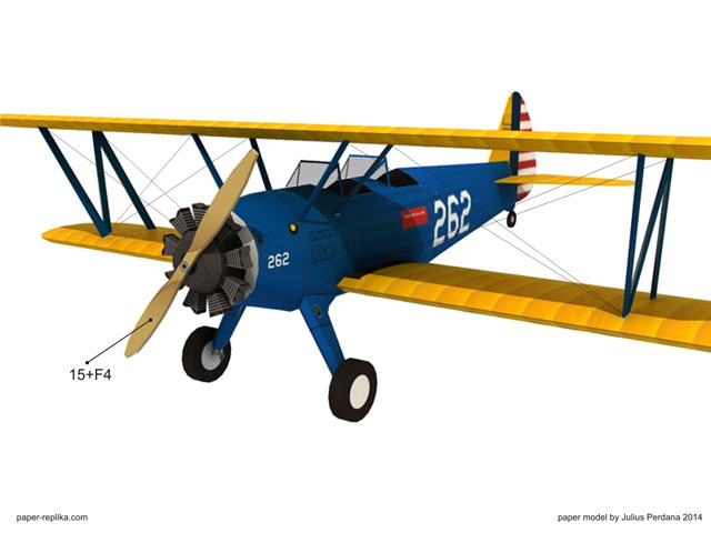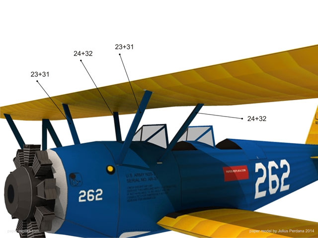 This is a model of Boeing PT-17 Stearman, from WWII era. A biplane from 40s, it was used as a trainer plane for many US fighter pilot. Now the plane use for acrobatic shows, private owned or even for crop dusting. I always combine many my hobbies into one if possible. As you may have know on my Facebook I've been busy experimenting with my new hobby, scratch building an RC plane using foam. The design method for foam aircraft model is pretty similar to paper model template version, but it's already simplified even more. I re-use the 3D model for making paper model template. The scale is 1:40 the same scale as the existing Wilga model. The template use formers and inner glue tabs, so you need to provide 2 kind of paper. You will need cardboard for its formers/ frames and 100 gram paper for the skins.