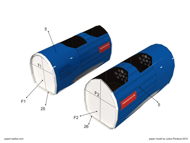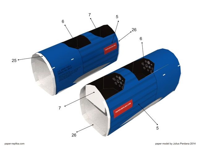 Glue first inner glue tabs on middle fuselage section (5) and then roll it and make a tube. Place cockpit wells from inside (6,7)
