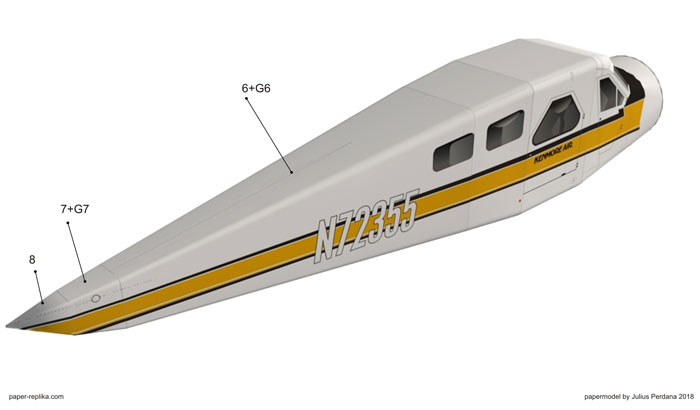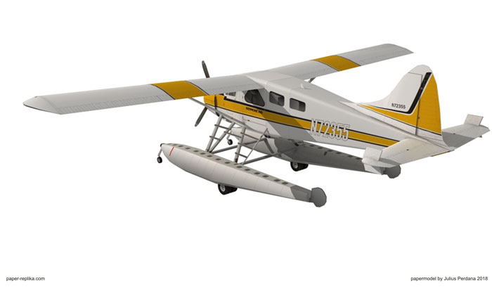 This is my first paper model in 2018 after months in a hiatus. I don't know how to describe it, but it's not a comeback release. I'm still struggling to find a way to make more models as in the past. I can't promise you anything this time. But I was enjoyed designing this template and build it myself after so long haven't got a chance to do it. About a month ago I play so many hours in Microsoft Flight Simulator X for the first time. In the early computer game age, I was into simulator games, like Chuck Yeager Combat Simulation, F-117 Nighthawk or A-10 Tank Killer. All still in DOS format, but when Microsoft Flight simulator came I haven't tried it yet until last month. It was very addictive if I may say, it brings back a joy of flight sim experience, with lots of keyboard commands like the real plane. And then this Kenmore Air DHC-2 Beaver caught my eyes, I have to make a paper model of it, because it's a beautiful plane. I'm also planning to make it flyable as an RC model plane, but first I need to make the paper model first. So here it is, the model is in 1/32 scale. Big enough to have a decent details. The model wing will have about 45 cm wingspan. You need to use 3 type of paper or card, for the main template 160-200 gram card will be good and for the struts and spinner you will need 80-100 gram paper and the last is 1 mm thick cardboard. I also made a new numerical system, the formers will have F letter on the front and G for gluetabs and each elements have the same number, in example if part 4 has gluetab it will be G4 and if it has former, it will be F4. I made a slide show video on youtube about this build, you can watch it here. Please Subscribe my channel of you like :).