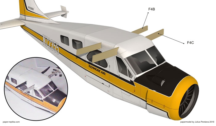 Glue G4 onto back of part 4. Glue part 4 with set of part 1 first, then attach a former (F4A) on part 4.