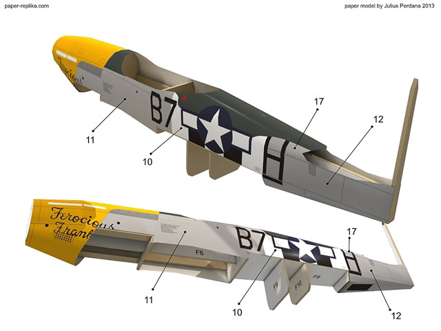 Shape the fuselage by attaching part 11 and 10. Part 12 first and then part 17. Shape all the parts before glueing them on their place.