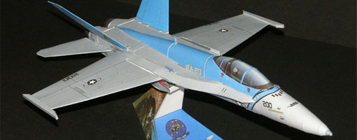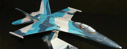 This hornet is one of Naval Strike and Air Warfare Center (NSAWC) aircraft trainers. NSAWC is a main Naval training center and air tactics development located in Fallon, western Nevada USA. This hornet uses blue splinter camo, a distinctive Russian camo. That's why it is called Aggressor, it play as an enemy plane in training. The templates is modified from Paper Replika's F-18 Blue Angels by our friend Kim. Assembly instructions please refer to Boeing F/A-18 Blue Angels Papercraft