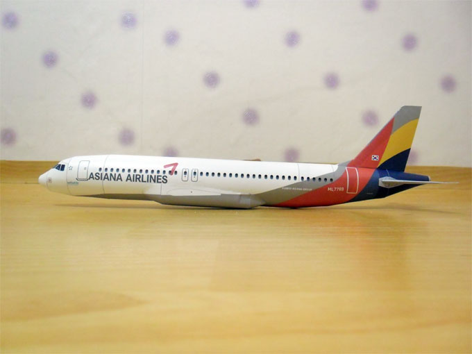 This model was submitted by Kim Hyeon Gon (ZION), he is a South Korean junior/middle high school student. He recolor the original Paper Replika's Airbus A320 template with Asiana Airlines livery. When this model received by me he already in progress on building this aircraft model as you can see on a photo below, it looks very nice and the livery color is beautiful, I like it. The template sent by ZION is actually relatively big in size, it's 28 Mb! He created it in Adobe Photoshop, so I edit the template again in Corel Draw and re-use the existing vector images.to reduce the file size. My effort resulted with a final 1,18 Mb size template in PDF. Asiana Airlines is the second major airlines beside Korean Air, it has domestic and international flight as well. It has 11 A320 planes in the fleet.