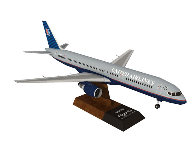United Airlines Flight 93 was crashed in 11 September 2001 in Shanksville in Stonycreek Township in Somerset County, Pennsylvania, before it was hijacked by Al Qaeda terrorists. This Boeing 757-222 was failed to reach terrorist intended target because its passenger fighting back and attempting to regain control of that hijacked aircraft. The temporary memorial now stood in the area where this plane crashed. This aircraft paper model kit is intended to remember that event and this is the second paper model kit for 9/11 Memorial. It supposed to be released yesterday but I was busy solving Paper Replika server problem. This kit has the same scale as Airbus on airliners category which is 1/100 and also comes with landing gears and display stand.