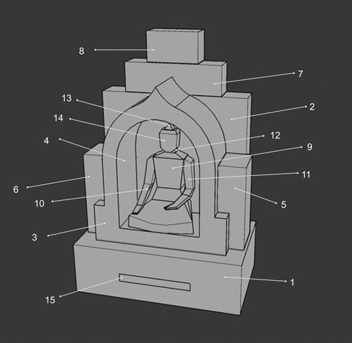 The monument is both a shrine to the Lord Buddha and a place for Buddhist pilgrimage. The journey for pilgrims begins at the base of the monument and follows a path circumambulating the monument while ascending to the top through the three levels of Buddhist cosmology, namely Kāmadhātu (the world of desire), Rupadhatu (the world of forms) and Arupadhatu (the world of formlessness). During the journey the monument guides the pilgrims through a system of stairways and corridors with 1,460 narrative relief panels on the wall and the balustrades.