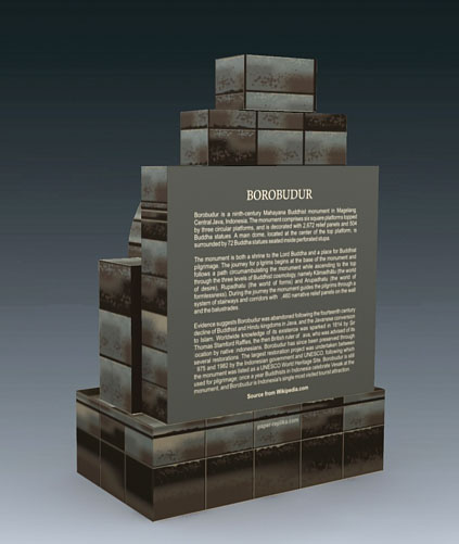 Evidence suggests Borobudur was abandoned following the fourteenth century decline of Buddhist and Hindu kingdoms in Java, and the Javanese conversion to Islam. Worldwide knowledge of its existence was sparked in 1814 by Sir Thomas Stamford Raffles, the then British ruler of Java, who was advised of its location by native Indonesians. Borobudur has since been preserved through several restorations. The largest restoration project was undertaken between 1975 and 1982 by the Indonesian government and UNESCO, following which the monument was listed as a UNESCO World Heritage Site. Borobudur is still used for pilgrimage; once a year Buddhists in Indonesia celebrate Vesak at the monument, and Borobudur is Indonesia's single most visited tourist attraction. [Wikipedia]