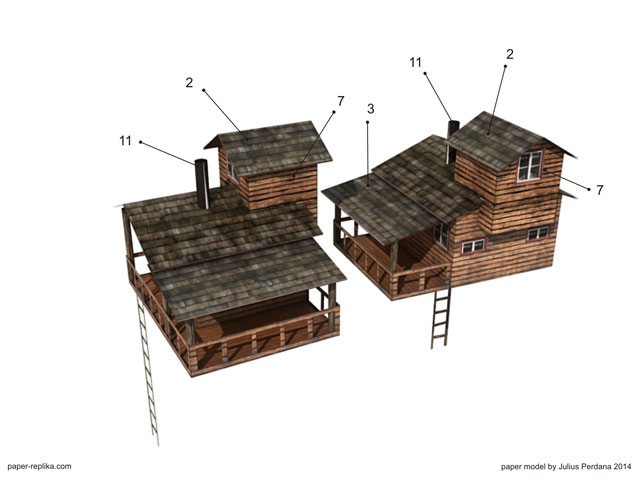 Back to building model again. Since I was a kid, I always dream to have a tree house. I like to climb trees back then. I would build one now if I have a tree in my backyard, but sadly there is not one big tree there, even more sadly I don't have a backyard in my house, lol. I like to see a big tree, especially the one with small leaves, and I like to imagine if there is a tree house up there, would be so cool. I recently watch a TV program titled "Tree House Master" on Discovery World channel. I love that show and then I try to make 1:100 miniature, but exclude the tree, just the house. So here it is a simple but quite tiny template. It has only 1 page of pattern.