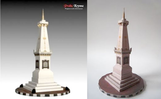Tugu Yogya model designed by Yudho Wiratomo a paper model designer from Indonesia. Tugu Jogja is the most popular landmark of Yogyakarta(also known as Jogja). This monument is located in the center of the crossroad between the Mangkubumi, Soedirman, A.M. Sangaji and Diponegoro roads. Tugu Jogja was also called as De Witt Paal (in dutch) or Tugu Pal Putih (white post monument).In the past, tugu Jogja had a diferent form than what is look like now, it was originally constructed in cylindrical form (from base) to conical form upwards with rounded top, and it was 25 m high. On 10 June 1987, a big earthquake happened in Yogyakarta, it ruined the Old Tugu Jogja. In 1889, Dutch goverment (colonizer of Indonesia in the past) renovated Tugu Joga. "The new monument was constructed as a square with each side being decorated with a kind of inscription containing the names of people who were involved in the renovation" from yogyes.com. It has 15 m high and golden conical top like you can see untill now, as the modern form of Tugu Jogja. This monument is very special because of its history and mistycal legend. It was told that South sea, Keraton Yogyakarta, Tugu Jogja, and Mount Merapi made a straight line as a relation symbol, between human and God.