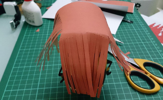 Minion Black Widow template by Rickie Yeung from Hongkong. This template contains of 3 pages of patterns, added one page for her hair part. The hair part is not ready to use, you have to manually cut the hair. Rickie has provided photos of how to manually cut the hair part. This is also a chance for you to make your own version using other material. I already adjust the scale of this template to match the other minion templates.