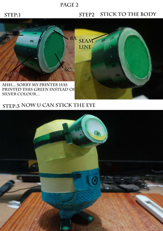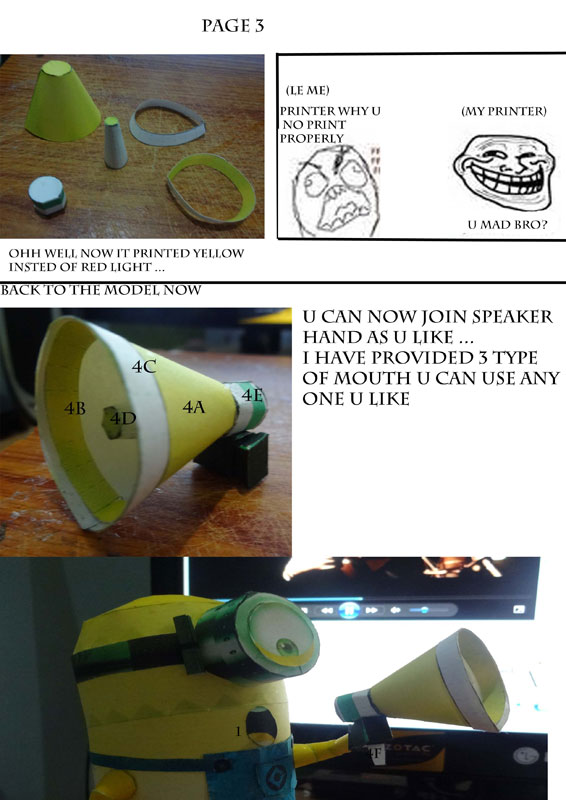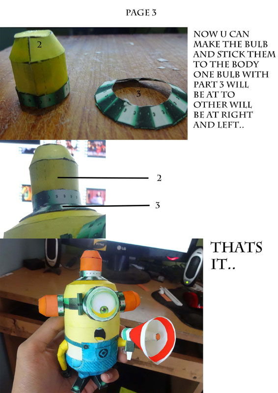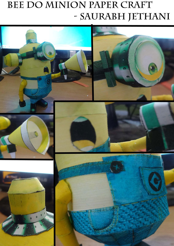 Another new minion theme paper craft, it was submitted by Saurabh Jethani from India. The model is more detailed that Paper Replika version, the hands are already 3D. He build and designed this minion template by himself. The paper craft is depicted a minion that is doing "Bee-do" . Bee-do is an action in a scene in Despicable Me 2 movie by one of the minion that simulates a siren sound with his mouth using a megaphone and also equipped with siren lamps on his head. The template consists of 3 patterns.