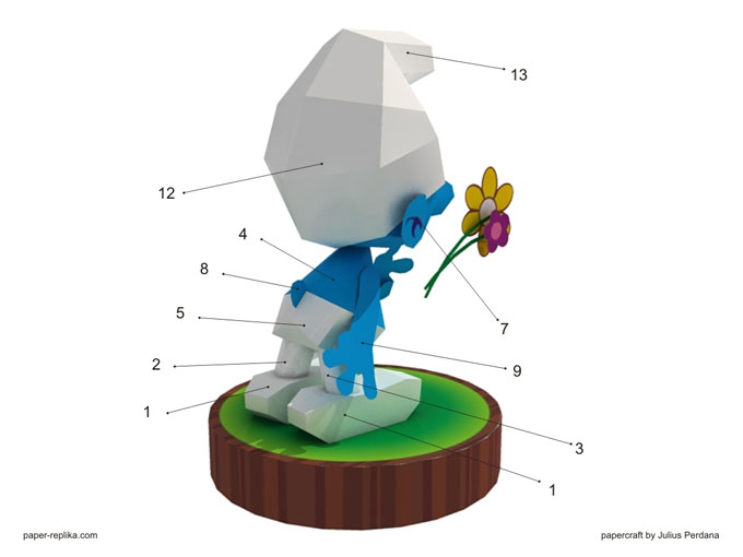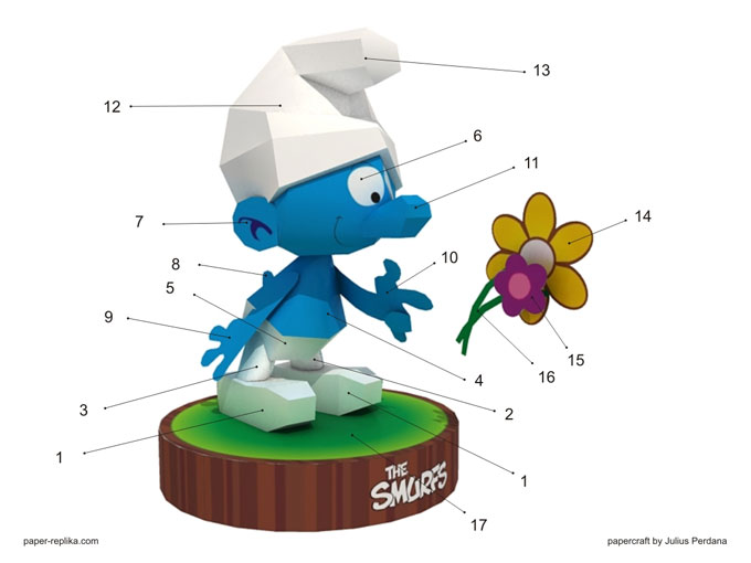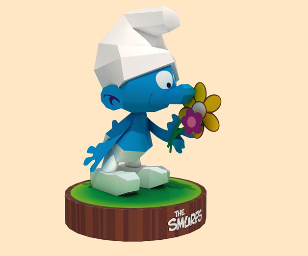 About a year ago, my friend had request this smurf figurine papercraft but I didn't make it until now. This is Smurf in love, in the comic he always sniff or brings flowers to be given to smurfette, a pretty blonde smurf :). And then I read about how Smurf the movie had been on top of the movie box office chart this week in USA theaters, so I think this is the right time to make these cute creatures into papercraft. I plan to make the whole smurf village complete with houses and its citizens. This Smurfs which I model is not from The Smurfs movie (2011), I use the original comic drawing as my reference, or maybe it will be cross usage with the movie. I remember, I had enjoyable times when reading this comic when I was a kid, I love miniatures so much, that's why I love scale modeling. I made two wiggle stereoscopy, just click on the wiggle image to open another one. So smurf the smurf!
