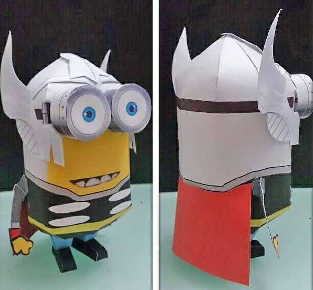 One more Avenger character added to the custom minion templates. This template was submitted by Rickie Yeung from Hongkong, he modified yellow minion template into Thor minion. He use texture from Thor paper figure template designed by Christopher Ryan from Bamboogila's Corner, which also hosted here in Paper Replika. Rickie missing something here, Thor's hammer. I already added a simple hammer pattern in this template. Photo and build by Rickie Yeung.