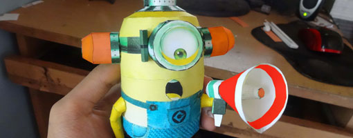 Another new minion theme paper craft, it was submitted by Saurabh Jethani from India. The model is more detailed that Paper Replika version, the hands are already 3D. He build and designed this minion template by himself. The paper craft is depicted a minion that is doing "Bee-do" . Bee-do is an action in a scene in Despicable Me 2 movie by one of the minion that simulates a siren sound with his mouth using a megaphone and also equipped with siren lamps on his head. The template consists of 3 patterns.