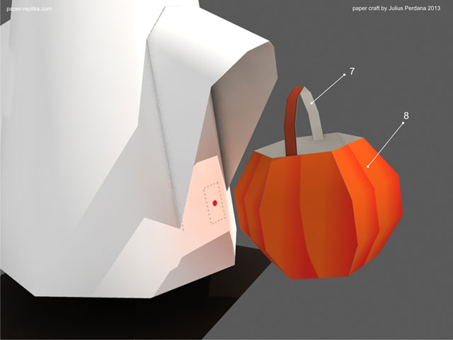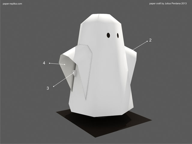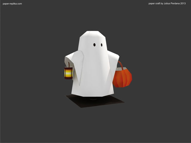 The last Halloween paper craft that I made was in 2010. I don't remember why I was absent in the last two years, but I know I nearly absent again this year :). I posted on Paper Replika Facebook page asking what paper craft for Halloween, they are many answers from ghostly character to unrelated character, from diorama to haunted house. We naturally are not celebrating Halloween here, so it a bit hard to tune in the mood. I already try making a haunted house but I lost my mood, it was difficult :). So I turned to the most basic traditional thing that related to Halloween, ghost and pumpkin, again lol.