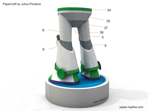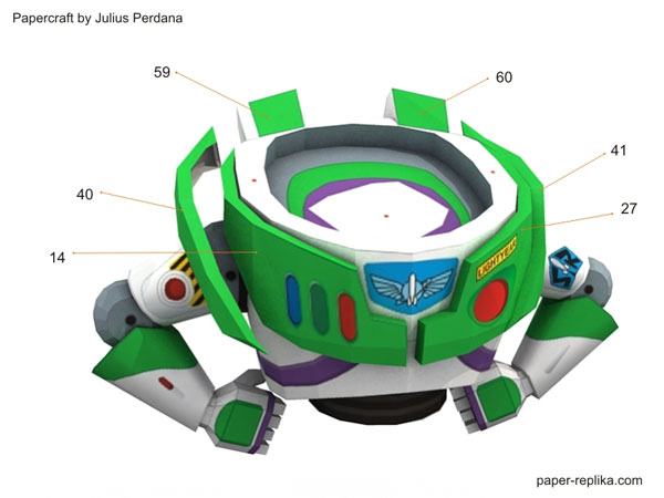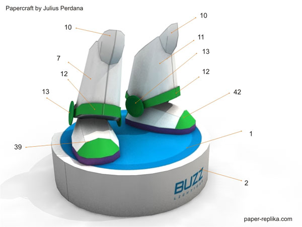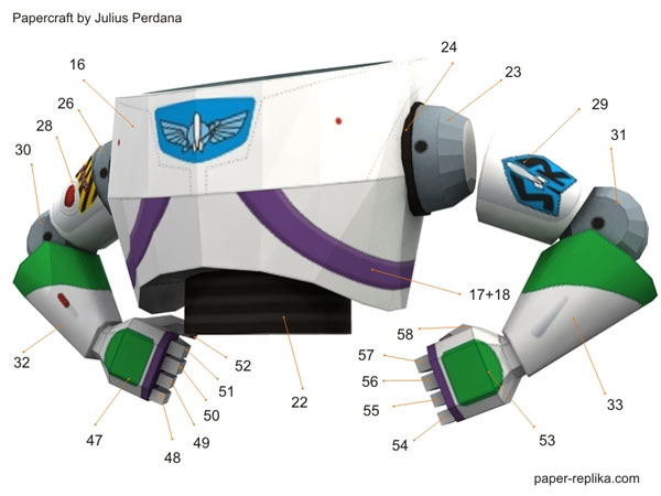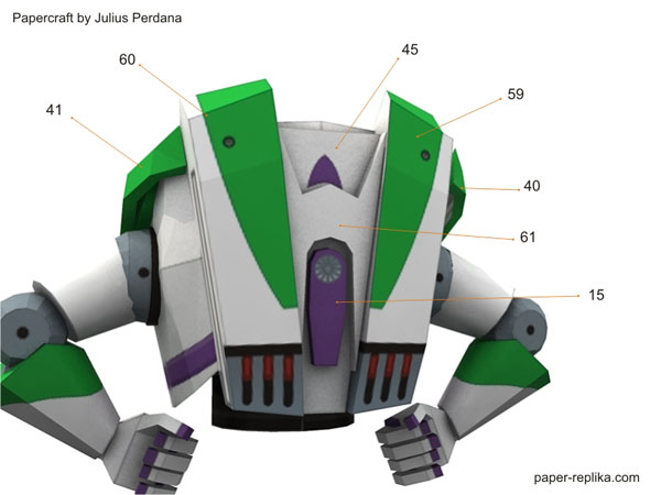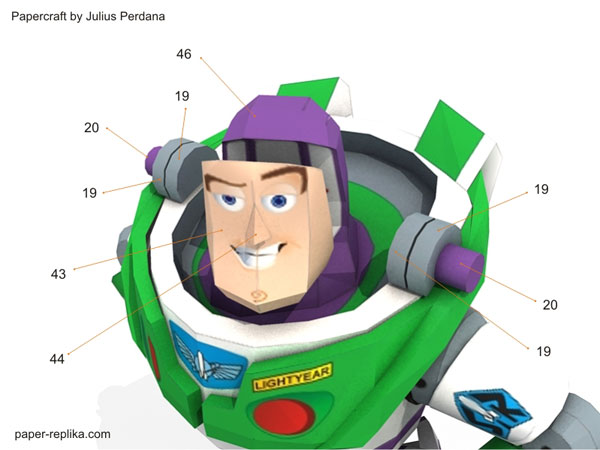 My original plan was to design all roundup gang members, but when I was preparing for Jessie the cow girl paper craft figurine I post a poll on PR facebook page which ask which one is first, roundup gang or Buzz? And the winner is Buzz, off course. This Buzz Lightyear paper craft figurine was quite challenging because of many of his body parts are curve geometry. So here he is, to infinity and beyond!
