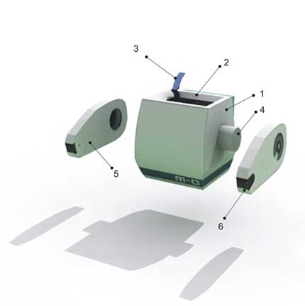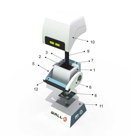 M-O (Microbe Obliterator) is a cleaner-bot programmed to clean anything that comes aboard the Axiom that is deemed a "foreign contaminant". M-O Travels speedily around the Axiom on his roller ball, cleaning the dirty objects he encounters.