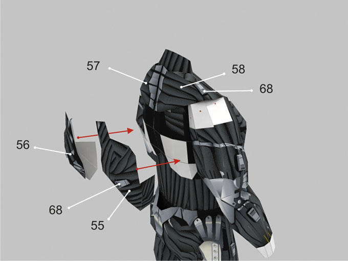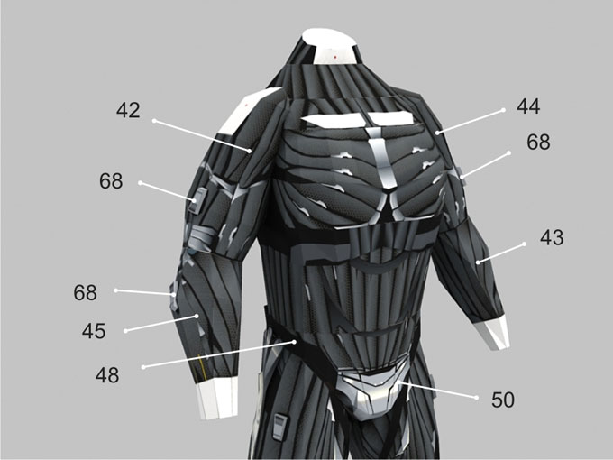 On 2010 I worked on this Nanosuit 2.0 paper model commissioned by Crytek, the award winning game producer of Crysis.. This 10 pages template eventually was not used by Crytek in their promotion campaign during Crysis 2 game launching. Although it is good for their promotion in figure modeling and paper model community, I was the only one outside Crytek that have this template. I always exhibit the assembled 1/6 Nanosuit 2.0 paper model in every occasion whenever I had the chance, people keep asking me where did I get this template, I always said "It's just for private use, not for share". Also I once post the built photo on Paper Replika Facebook page, the same thing happened. But recently I stumbled upon an image of Nanosuit 2.0 equipped with his tactical bow and in ready to shoot pose (Crysis 3 teaser image). That was so cool, so I try to modify the existing Nanosuit 2.0 3d model for paper model that I already made to pose like that image and post it on Facebook. That image was seen by Crysis team on Facebook and they gave me a green light to continue the work, so I think It's okay too to share the standing pose model. This template is 'different' from many of my template designs, the texture was carefully drawn in scalable vector image, every detail was drawn manually not from image or photo. So here it is Nanosuit 2.0 paper model, and this is a fan work and not an official paper model.
