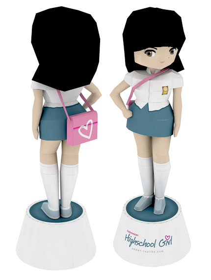 Happy New Year 2009. New hope, new spirit, new friends and new models! Learn from Santa model I release new model series in this year, I named them minipeople series, which is miniature and deformed of unique people. Not very complicated but not too simple, so they would be worth to build paper models / papercraft. This Indonesian Highschool girl model is my first try, she is cute and I like her. Thank you very much for your donations, comments, suggestions, ratings and supports in 2008. I really appreciate it and I will design more models better. I also plan to release paper-costume.com in this January 2009, so this begining of this year would be a very busy days for me. Wish me luck and happy building.