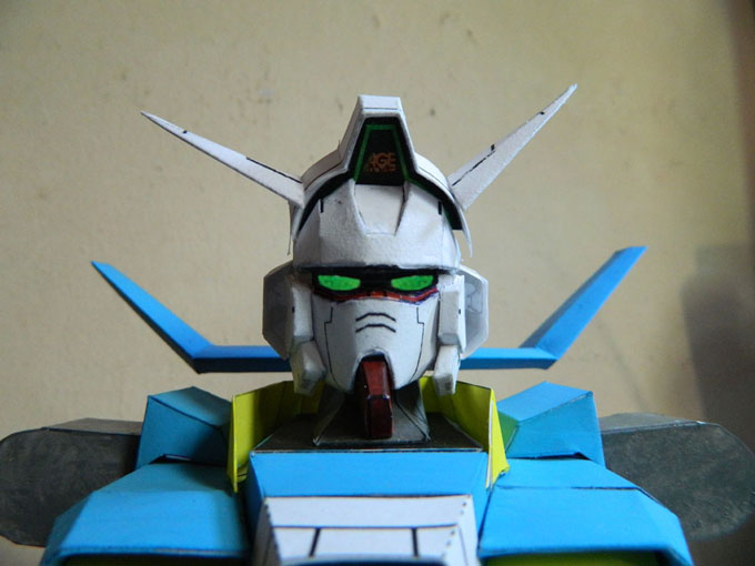 The latest new Gundam paper craft hosted in Paper Replika, Gundam AGE-1 Normal. This Gundam model kit template is designed by Wanda Bachtiansyah. As usual he will release it part by part, he actually has made complete the torso part but for the first time he made for public this head templates first. Not like Sinanju, AGE-1 Normal Gundam is ink-friendly because almost of its parts are colored in white.