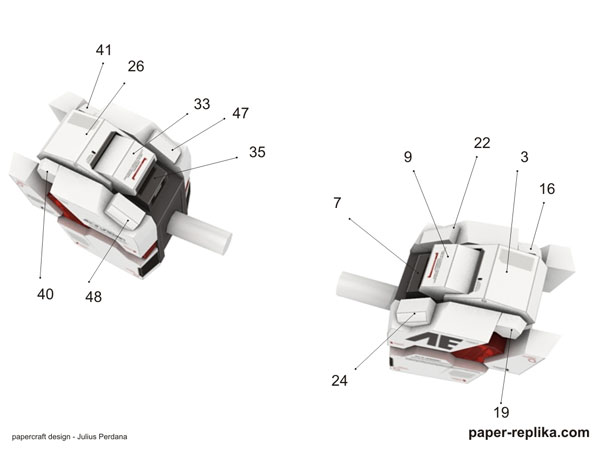 Two pages of pattern for this unicorn gundam's shoulder. My plan was to release complete arm parts, but it would take too long. This is my first paper model with articulated joints, I hope it will work. And the important thing is I want to maintain my mood by not take too long to designing a single subject. I also still take sometime on modeling OP arms. Unicorn shoulder is supposed to release after my work in progress OH-58D Kiowa Warrior, but I switched to gundam in the middle of detailing its 3d model.