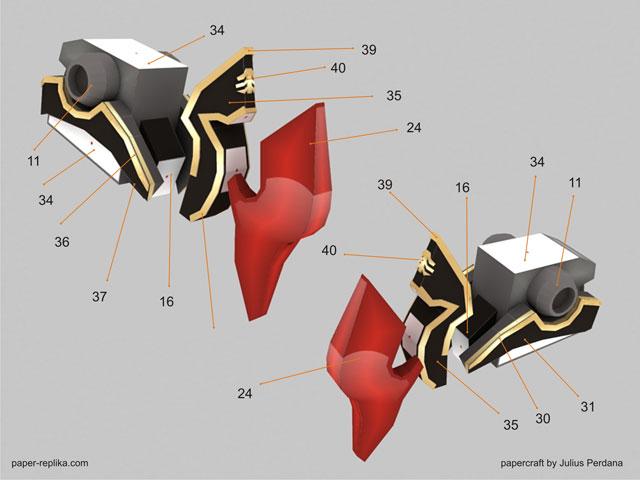 This release is by far in my opinion the most difficult paper model part I ever created. It took me more than 2 weeks to model and to remodel, to unfold and to re unfold. Coloring is not a big issue, the 3d modeling is hard because I need to think the best approach to have the best and easiest templates. I feel so relieve this templates is finally release, I don't know if I can stand the boredom if it even gets to three weeks in the making. After the leg part the rest are more simpler and most have far fewer parts than this. I'm happy now because I can design on different subjects, happy building! cheers!