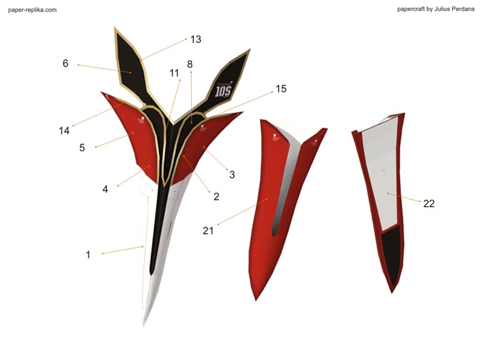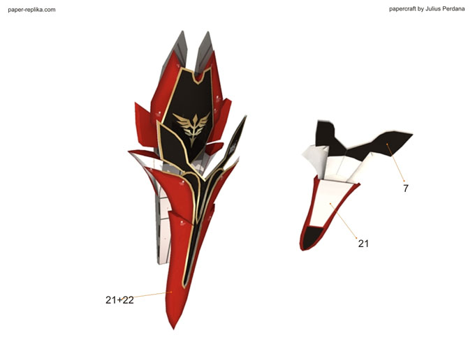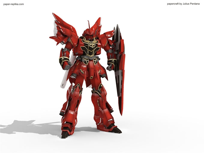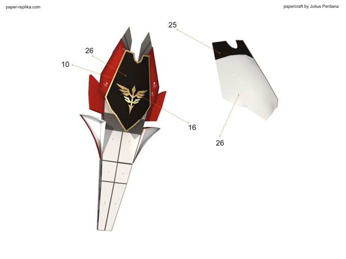 This is an accessories part for the existing Sinanju Gundam paper model kit, which is the shield. Sinanju's shield is quite long, about 80% of its the height from toe to its head. Templates consist of 12 pages for large version 68 cm and 5 pages for the small version 38 cm. After this release there is only one thing left to be made, that is its cannon.