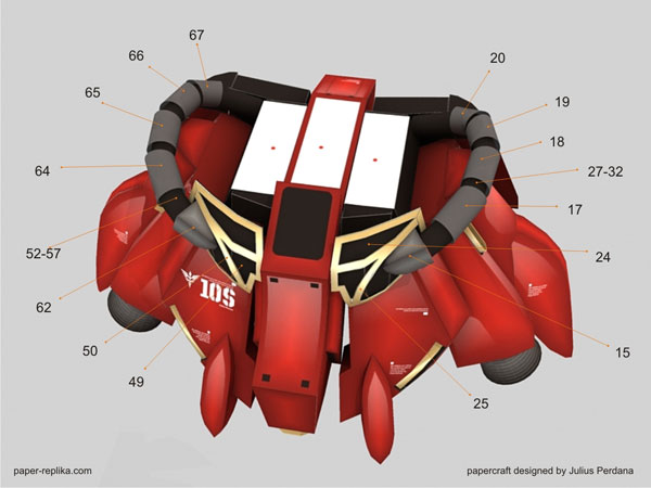 As previous parts, This Gundam Sinanju waist part come with 2 scale, large version contains 11 pages and the small one only has 6 pages. This part is more complicated than the torso.
