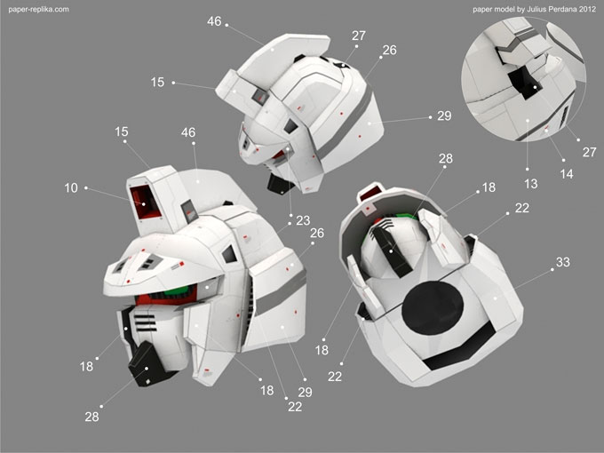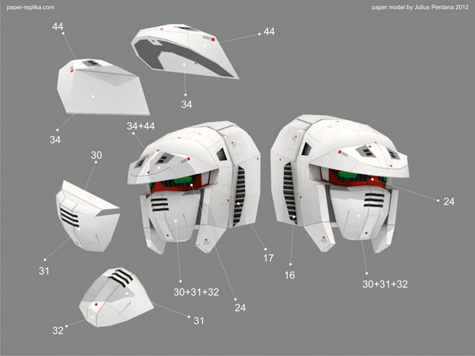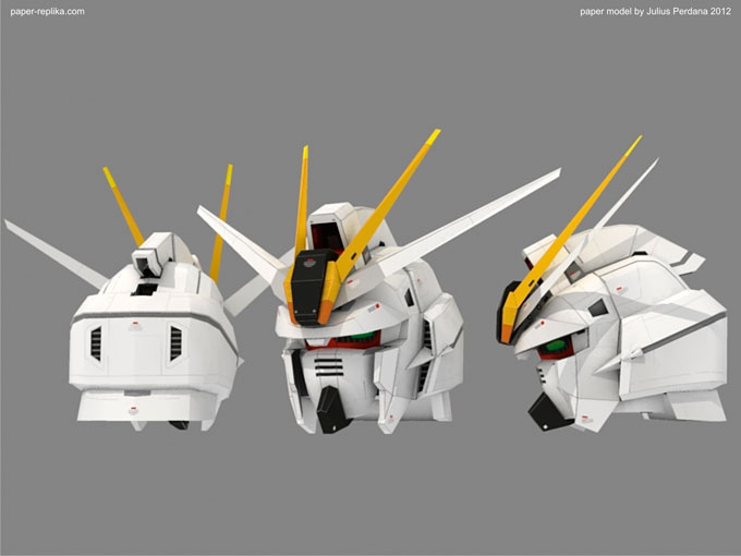 It’s already a year I have not making any new Gundam model. My last Gundam was Sinanju, on 21 October 2012 it will be exactly one year from the last time I released the Sinanju’s shield. I choose on making Sword Impulse because I like the detail and the proportion, it’s just simply beautifully handsome :D. This time I adopt the scale of Rino’s Gundam model, this Impulse model will have the same height as GAT-X105 Strike Gundam, which is 47 cm. This head template only consist of one page for one model head. I also plan to release it in two version colored and blank version one. Blank one is for colored paper or you can use fancy colored paper.