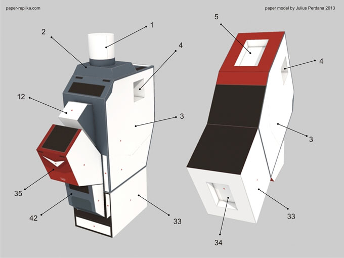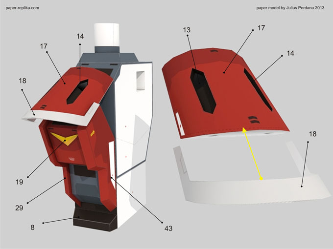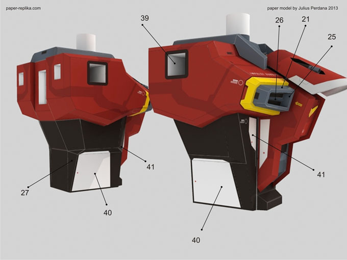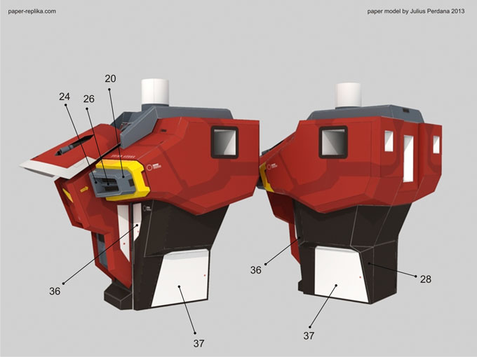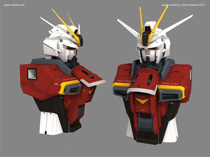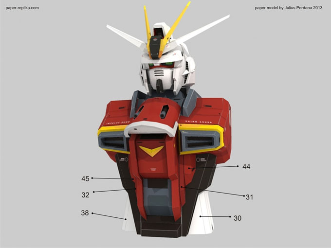 Finally had time to complete Sword Impulse Gundam torso part. The template consist of 3 pages of patterns. Most of the parts are modular, only a few that are not closed geometry. I made this template as easy as possible to assembly, but still there are some parts that I can not make it easier. Just make sure you have a sharp cutter blade, and make all the patterns well-scored you will be okay. I left the shaft without axle for arm joints, because I still have to figure out new joint design for the arm parts later. This release is only torso, you can obtain head parts on previous release.