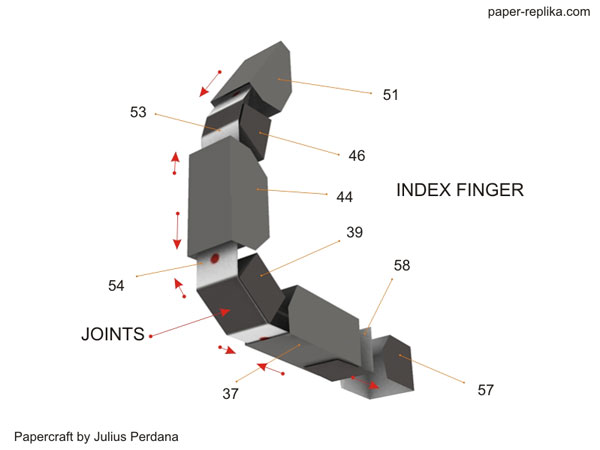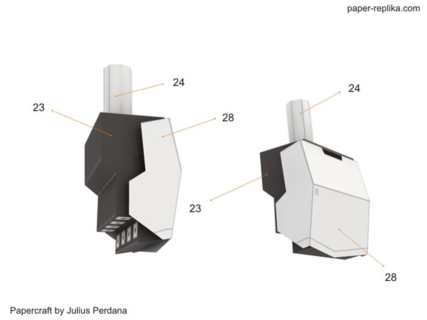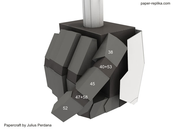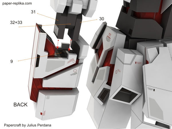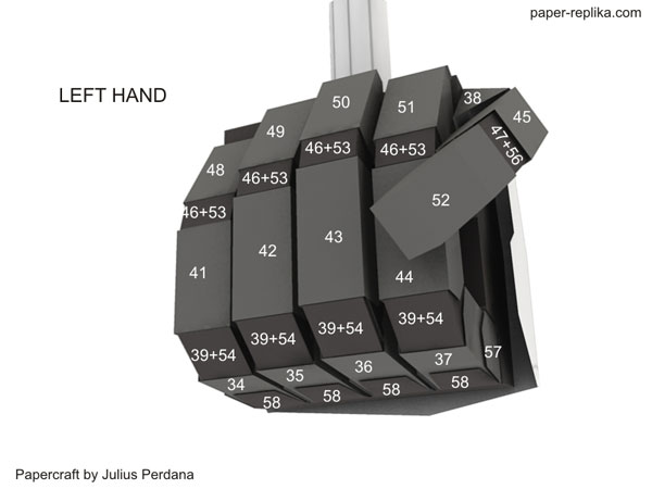 New parts for Unicorn Gundam. This parts are arms parts, consist of 4 letter pages. I use new type of joints for this unicorn fingers, flat joints. Instructions are for left hand only, the right one use the same numbers but the parts are mirrored. There will be 3 parts to go, legs, back booster - backpack, and accessories such as weapons and shield.