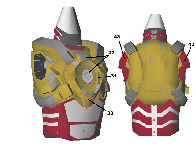 In the movie Iron Man 3, we are introduced to so many new armors, at least 40+ new armors. There are many request to me to make more iron man armors, but I already decided that I will stop on iron patriot, to give chance to other model subjects. But don't worry our friends Cristiano Luis Dias and Suraj S Prakash have new armor on the line. This is the first part of Iron Man Mark 17 "Heartbreaker" paper model template. It contains of 5 pages of patterns, the scale is 1:6.