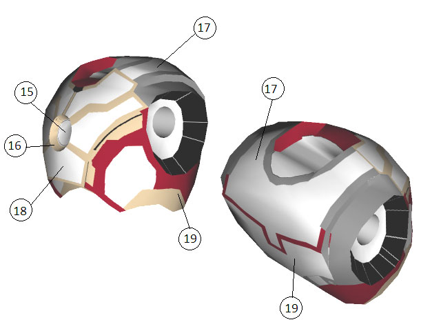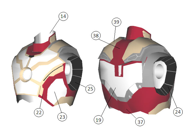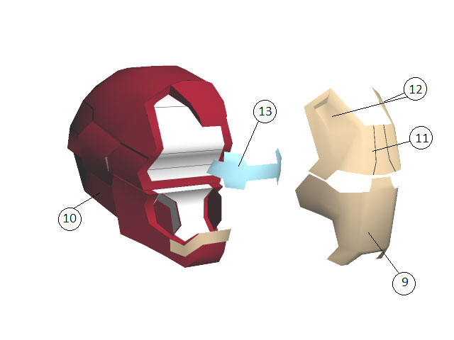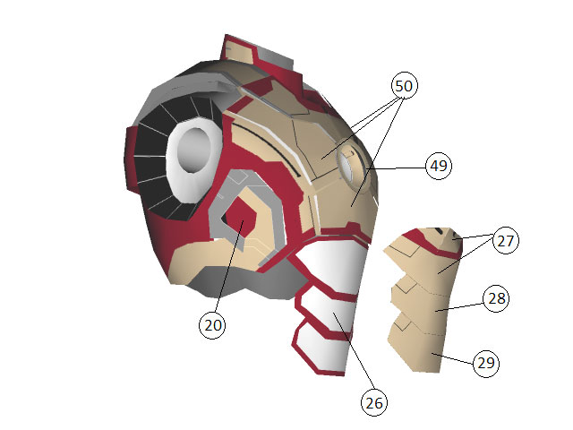 Some people asked me why don't I make a template of Iron Man Mark XLII from the new Iron Man 3 movie, because I never plan to do it. My plan is only to make Iron Patriot. But actually that's not quite true, because I did make the template, but It is for Cinemags movie this April special edition magazine bonus, a simple one and unfortunately it will not shared for free. So when Cristiano emailed me to share his own template, I feel so happy that finally Paper Replika has Mark XLII template to share. The template contains 6 pages of patterns, the scale is unknown, but it looks like in 1:6 scale. The template was designed by Cristiano Luis Dias and colored by Suraj S. Prakash.
