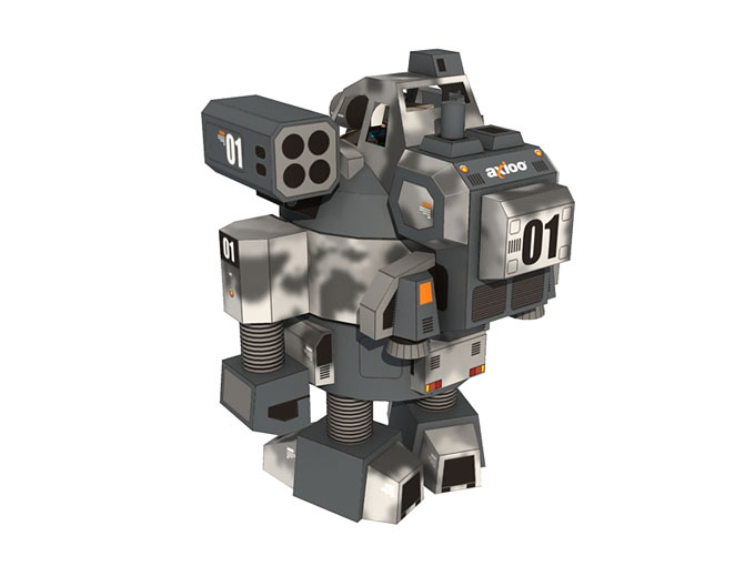 I use a different color scheme for Axioo Mecha Unit 01 paper craft template kit, I change it into urban camo color scheme. I also modify his cannon, with three barreled cannon. Axioo Mecha Unit is a sponsored papercraft from Axioo Id to promote their Axioo VIGO 410 "The phone for every scene" smart phone and Axioo PICOpad a touchscreen tablet, both use Google Android operating system. There is a competition involving this template, you can visit the competition details here or visit Axioo Id Facebook page