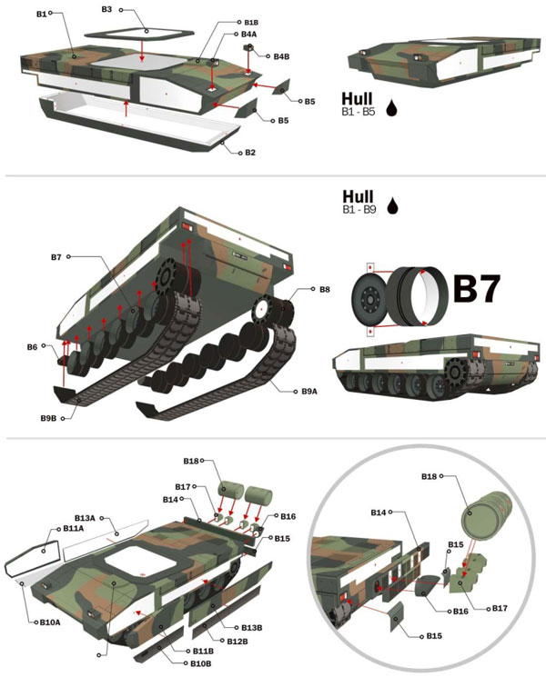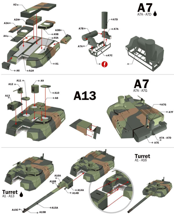 Again, it was a commercial paper model from my old site julescrafter.com, it's been 3 years,  now I share it for free. The Leclerc is a main battle tank (MBT) built by Nexter of France. It was named in honour of General Philippe Leclerc de Hauteclocque who led the French element of the drive towards Paris while in command of the Free French 2nd Armoured Division  (2ème DB) in World War II. The Leclerc is in service with the French Army and the army of the United Arab Emirates. In production since 1991, the Leclerc entered French service in 1992, replacing the venerable AMX 30 as the country's main armoured platform. With production now complete, the French Army has a total of 406 Leclercs and the United Arab Emirates Army has 388. [Wikipedia]
