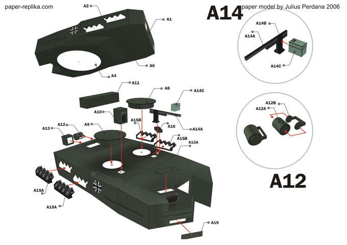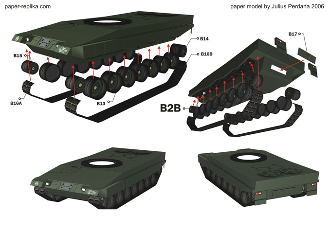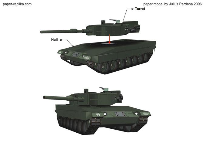 I am still working on a commissioned project, while browsing on my reference database I found a lost nearly forgotten file, it is an assembly instruction for my Leopard 2 A4 main battle tank paper model. I nearly forget that I’ve never publish it on Paper Replika, until someone asked me about that tank few weeks ago. Now I have found the instructions so why not I prepare this model for a while and publish it. This model tank was designed six years ago in 2006, in the same timeline I designed the M1A2 Abrams model tank. This model also was a commercial product sold in my old paper model online store. The instruction is still in my old style, I hope it still can be helpful.