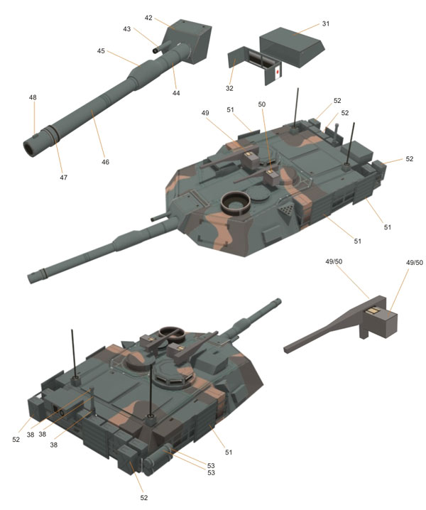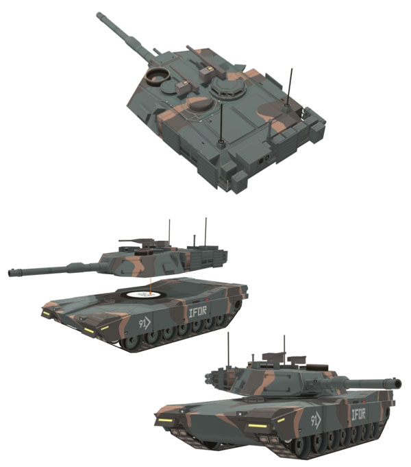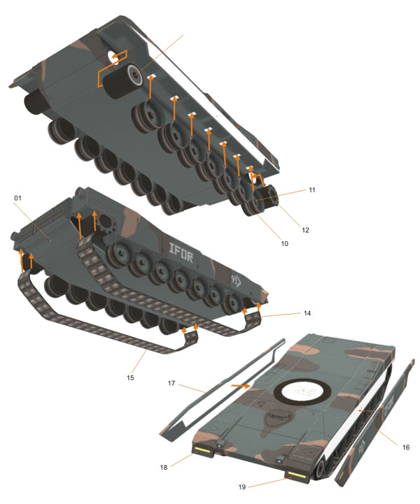 A green camo version of my M1 Abrams paper model, this one is from Kosovo battle ground. It was not really a battle, those Abrams stationed there as a NATO peace keeper troop. Some of abrams has mine plower. The M1 is a well armed, heavily armored, and highly mobile tank designed for modern armored ground warfare. Notable features of the tank include the use of a powerful gas turbine engine, the adoption of sophisticated composite armor, and separate ammunition storage in a blow-out compartment for crew safety.