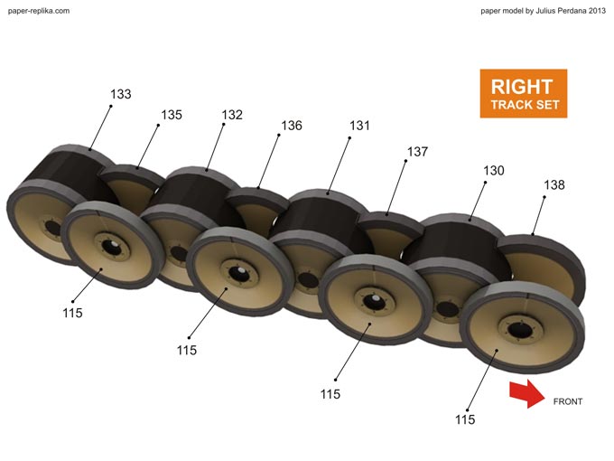Some left and right track set texture are different (mirrored), so make sure you make the right one. You can choose to make a hole on part 116 or leave it black.