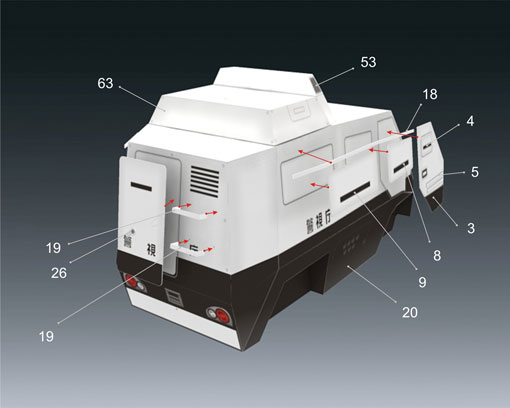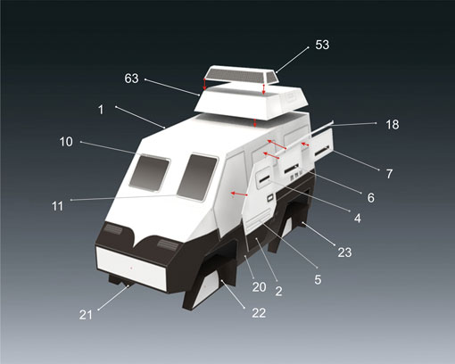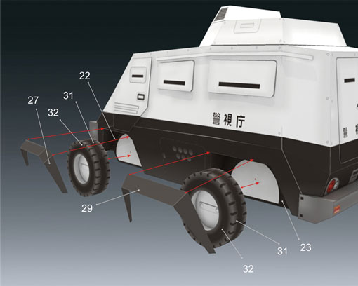 The Command Car from the original OVA series and the manga. Both Division 1 and 2 use the same type of Command Car. The "Forward" in the Patlabor team relays information to the Police Labor and assess situations from this vehicle. Built like a riot vehicle, it can take a lot of punishment, which is just as well when dealing with rogue Labors.