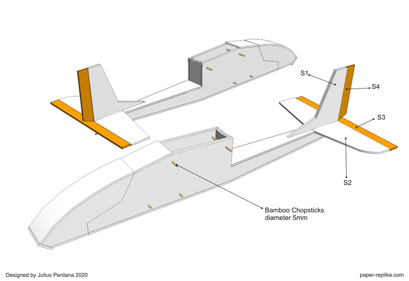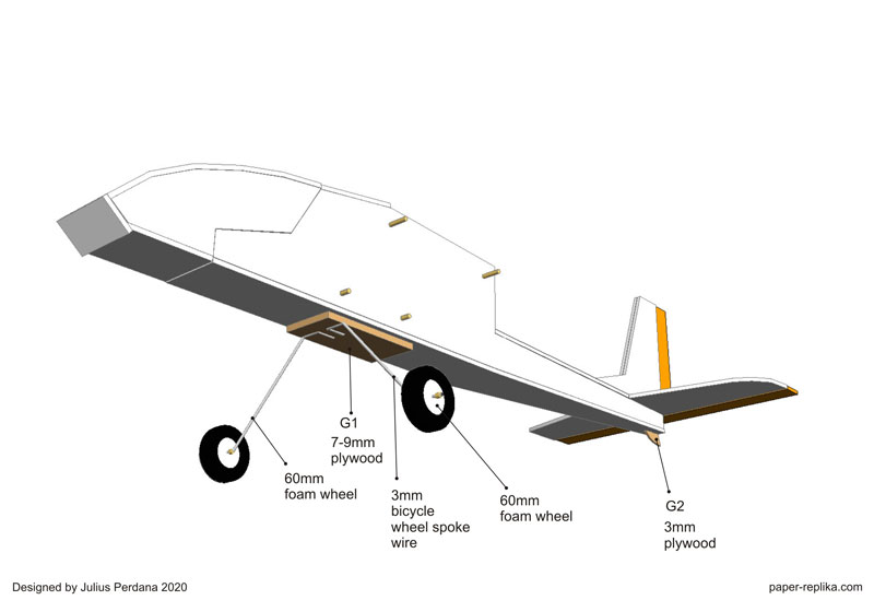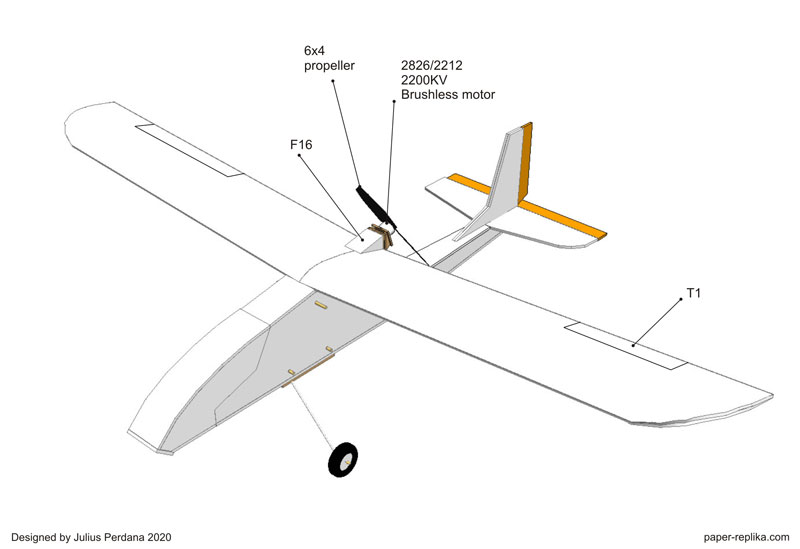 Bango v2 is an answer to many request for another simple plane design and a trainer for beginner. It was designed to surpass Bango v1 performance. The main goal is still the same, which is a trainer plane that is easy to fly and can withstand hard landing even crashes. Because I know beginners usually afraid to crashing their plane, so they held back. That's why I made Bango 2 so new pilots don't have to worry damaging their RC plane when hard landing or crashing. By moving the motor the the center and on the back of the plane make it free to propeller strike to the ground. Also build the vertical stab with 2 layer of foams gives Bango 2 more rugged than Bango 1. Rudder and elevator servo placement that are outside the fuselage also an ease for beginner to install. Bango 2 also equipped with detachable landing gear, if you hard landing with landing gear attached, it will detached by itself and will not damage the fuselage, because the landing gear just held by 2 rubber bands.