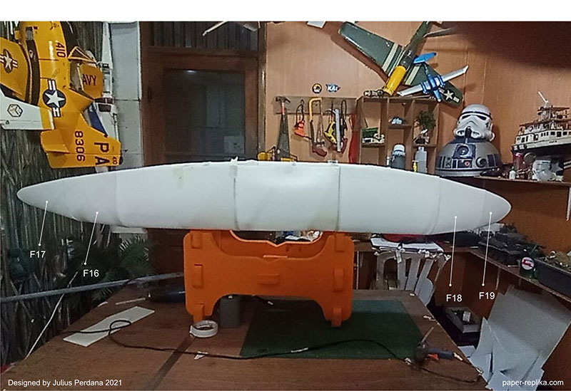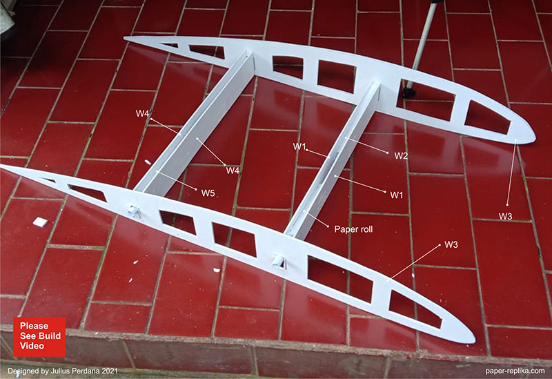 I am quite happy with the result of this giant RC Boeing 747 part 2. The model looks slick, shiny with packing tapes cover. Also the decal make it looks even more beautiful. The most important result is the weight, it is still half of my target weight which is 2 kg+, so I still can lift if it one handed. Although looks good, the build process was not entirely smooth. The fuselage was tend to twist but I already managed to correct it. To avoid fuselage twisting you have to assembly the top part of the fuselage separately and then, the merging with the wing fairing needs to be done on the last step. This model is designed to be able to fit in my car (Toyota Avanza) for transport.
