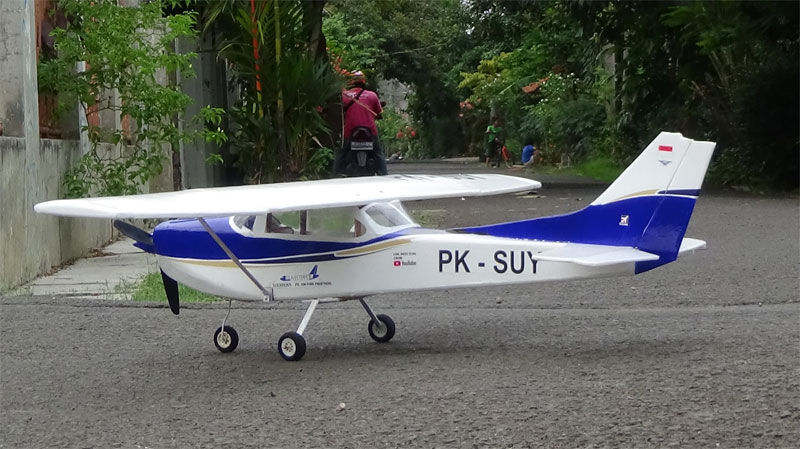 You can build yourself Cessna 172 model plane by following build tutorial on this video. The tutorial is pretty straight forward with easy to understand steps. Start from foam sheet into flying the plane itself with brushless motor electric power and control by radio. Painting process is also covered in this video. This model plane use color from the real plane, it's belong to an Indonesian famous pilot Youtuber Captain Vincent Raditya. This plane is pretty stable and easy handling, but not recommended for beginners who never flown an RC model plane before. The scale looks of this plane is very interesting to see when flying in the air. Take off and Landing are also scale like.