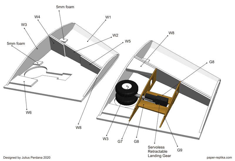the retractable landing gear to the wing and how to join the wing. In the beginning I also made a tutorial on how to build the belly