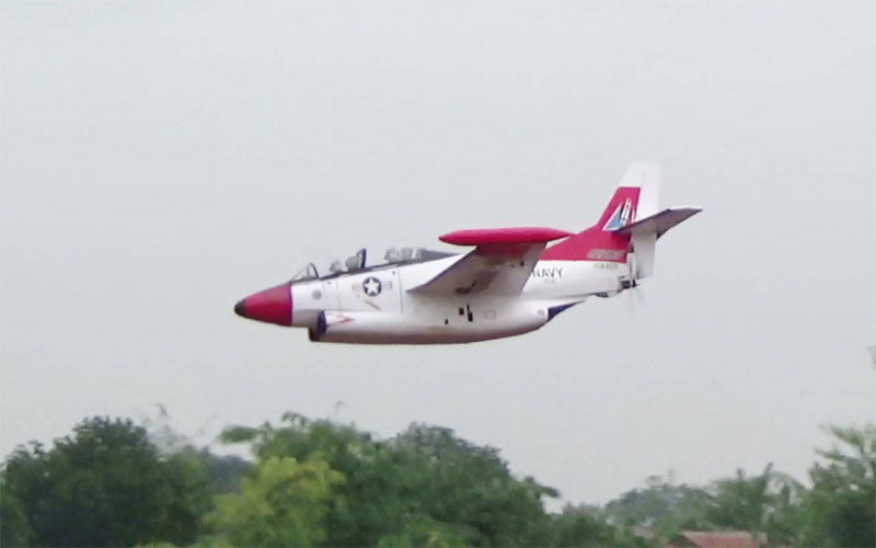 I already put an eye on this beauty, the T-2 Buckeye for quite sometime and now this time I share my build. This time I just want to make my dream jet, not to bother to simplify the shape, no detachable wing, no easy build, I just want to have her and fly it. I'm not expecting you to build this like any my other models, but if you want to this is a good flyer. My plan was to equipped this RC model jet with mechanical retractable landing gear or servo driven. But in a test, both had problem on the servo, I use plastic gear servo, maybe I should use metal gear servo. Finally I replace the main landing gear with servoless retract and problem is gone. Like usual I use pusher prop with NTM 2830 1000kv 370 watts motor, the same motor I use for Boeing 737-300. I also use the same prop 8x6x4 but with 4S battery. The prop specification is above recommendation but with 370 watt and soft blade I think it can manage. She can short take off and shoot the sky like on a rail. The landing is also easy, I am happy with the result.