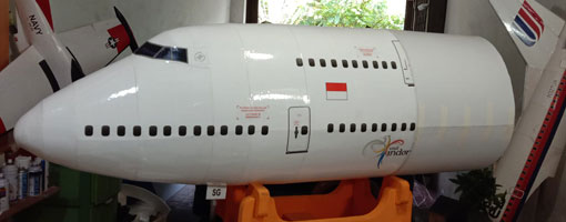 I am quite happy with the result of this giant RC Boeing 747 part 2. The model looks slick, shiny with packing tapes cover. Also the decal make it looks even more beautiful. The most important result is the weight, it is still half of my target weight which is 2 kg+, so I still can lift if it one handed. Although looks good, the build process was not entirely smooth. The fuselage was tend to twist but I already managed to correct it. To avoid fuselage twisting you have to assembly the top part of the fuselage separately and then, the merging with the wing fairing needs to be done on the last step. This model is designed to be able to fit in my car (Toyota Avanza) for transport.
