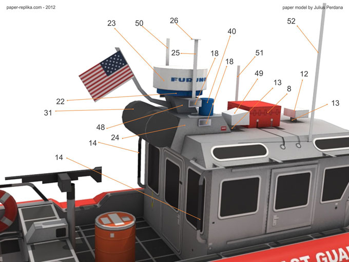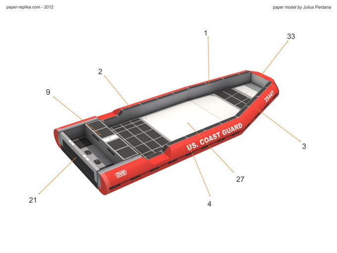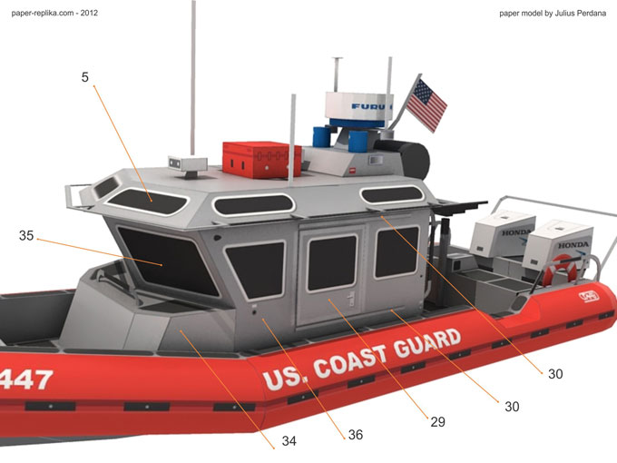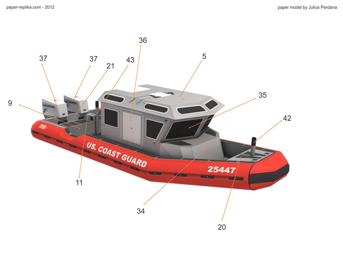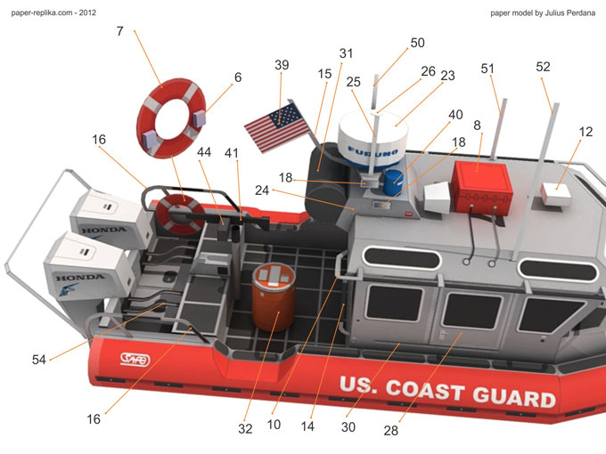 I always want to create a boat or a ship paper model but it never come to realization until I made One Piece "Going Merry" ship. Going Merry is a fiction ship and a bit cartoon style, I want a model of real ship. Actually I was planning on making a London red telephone box for paper modeling tutorial, but somehow I saw this US Coast Guard Response Boat Small (RBS),and I thought it would be a good start for my first ship modeling. I made This RBS paper model kit in 1:50 scale or 18 cm in length, it has 3 pages of templates.