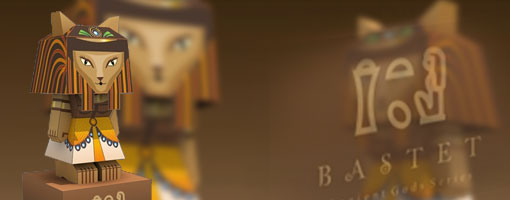 An Ancient Egyptian cat like goddess. She is an ancient war and sun goddess. Worshipped mainly on a town of Bubastis, as a local deity. The greek then turned her to moon goddess. Beside as a war goddess she also a divine mother, the protector of lower egypt. This papertoy only has 1 page, so easy to build as a company for two gods other ancient egyptian gods series.