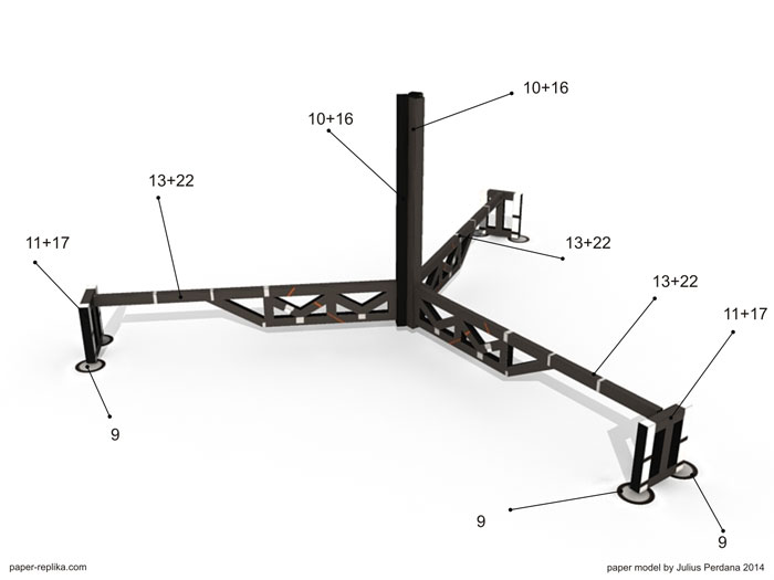 I feel excited when I read that scientists from European and US managed to land a lander on the surface of a comet that was currently wandering the space in 135,000 km/h speed. The comet is named 67P. It took 10 years (2004-2014) to intercept this comet before the mothership Rosetta finally managed to release the Philae lander to the comet's surface. Mothership Rosetta continues to orbit the comet until now. Before it's entering hibernation mode, its sensor could detect the presence of organism molecules and took some pictures. Currently Philae is not in operation. They said we have to be patient until August 2015 when the surface which comet lander sits is facing the sun, so that its solar panels can provide the power back and continue to explore the comet surface. The paper model is consist of 4 pages of patterns. You will need 2 types of paper to build this, a plain one about 100-160 gsm and 3 mm thick cardboard. The scale of this Philae lander model is about 1:10.