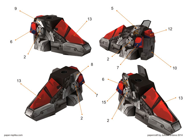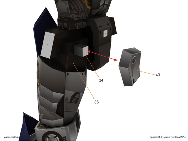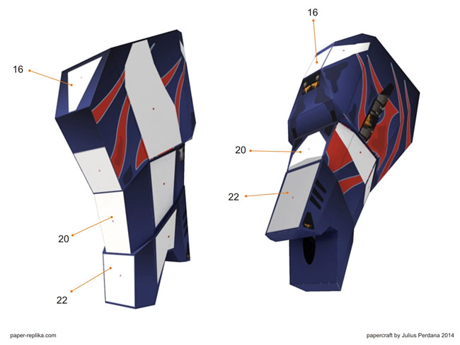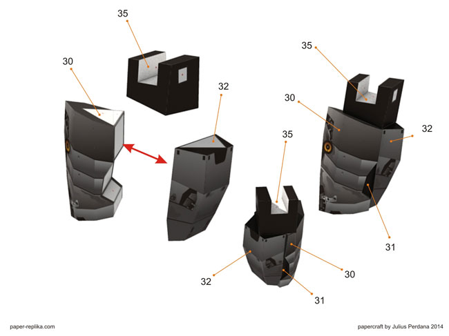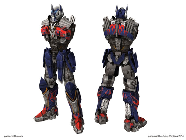 Finally finished the legs of Optimus Prime after intensively working on for over a week. The many reference images of Optimus Prime made me confused to choose the best version. In the end I combine multiple versions into one, and simplify it. The legs the new Optimus Prime is quite different from the previous films, a bit like a Gundam legs. The legs is made up of 37 pages effectively. Page starts with the left leg, and then right leg and the hip. Parts of the right leg use the same number with the left leg, simply reversed. After the hips and legs affixed to the torso parts, the overall high of Optimus will be 70 cm.