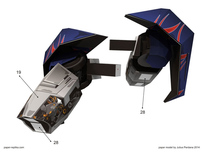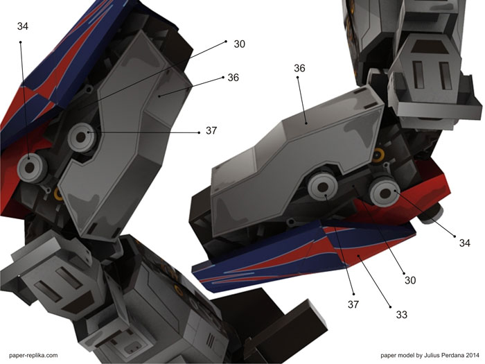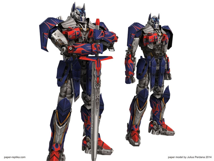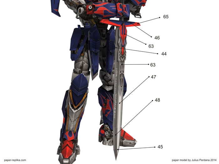 It was the end of my trip in designing paper model template for Transformers 4 Optimus Prime. I am very relieved with the completion of this model, because there are many interesting models models I need to make after this, such as, iron man hulkbuster, new upcoming minions movie, and others. In this final section, I close it by releasing the arm and a sword. In the assembly instructions I give specific instructions for Optimus right arm. The left side is the same as the right but in opposite direction. I also give two pages of patterns for the arms part that not holding the sword. So you can choose 2 pose, that is a pose that both arms are holding a sword and both arms pose hanging on the side. Both poses use many of the same part, only a few different key parts. Enjoy this paper model and thank you for all your supports and inputs in the making this paper model template.