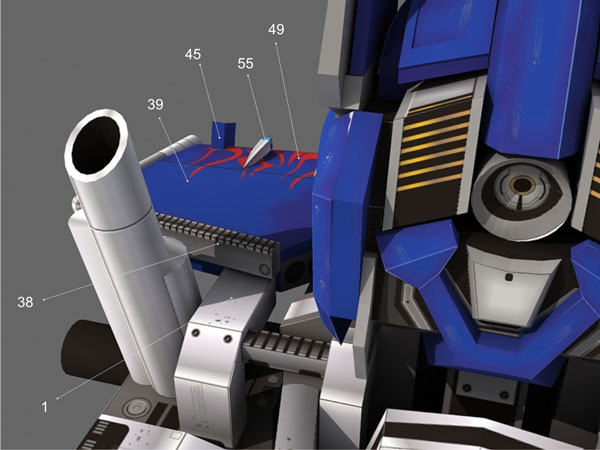 Optimus Prime paper model part 2C contains 15 pages of letter - A4 paper. To be continued to part 2D (the last sequence of part 2). There are some parts from Peterbilt truck that re-use for Prime parts.
